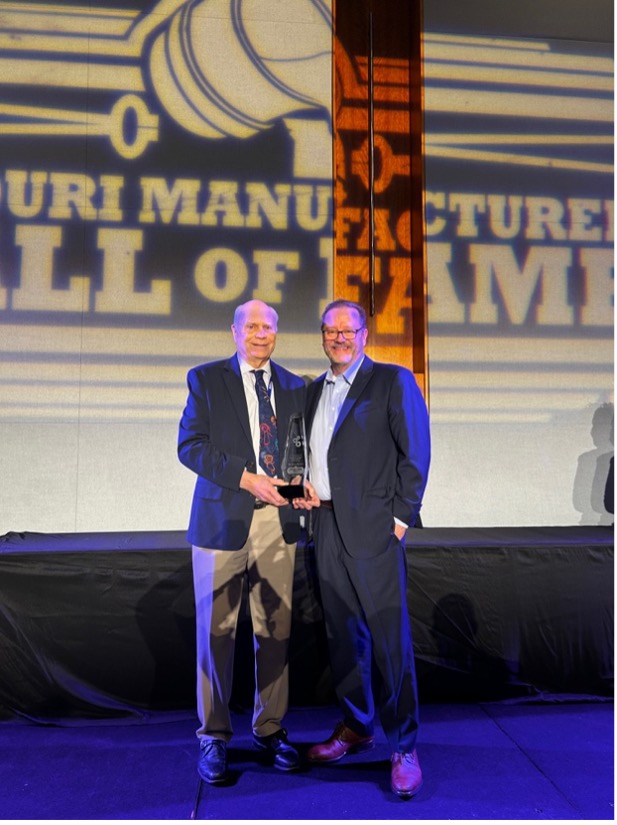 Dr. Terry Brewer (left) was inducted into the Missouri Manufacturers Hall of Fame, honored by Michael Eaton (right), Executive Director of the Missouri Association of Manufacturers.