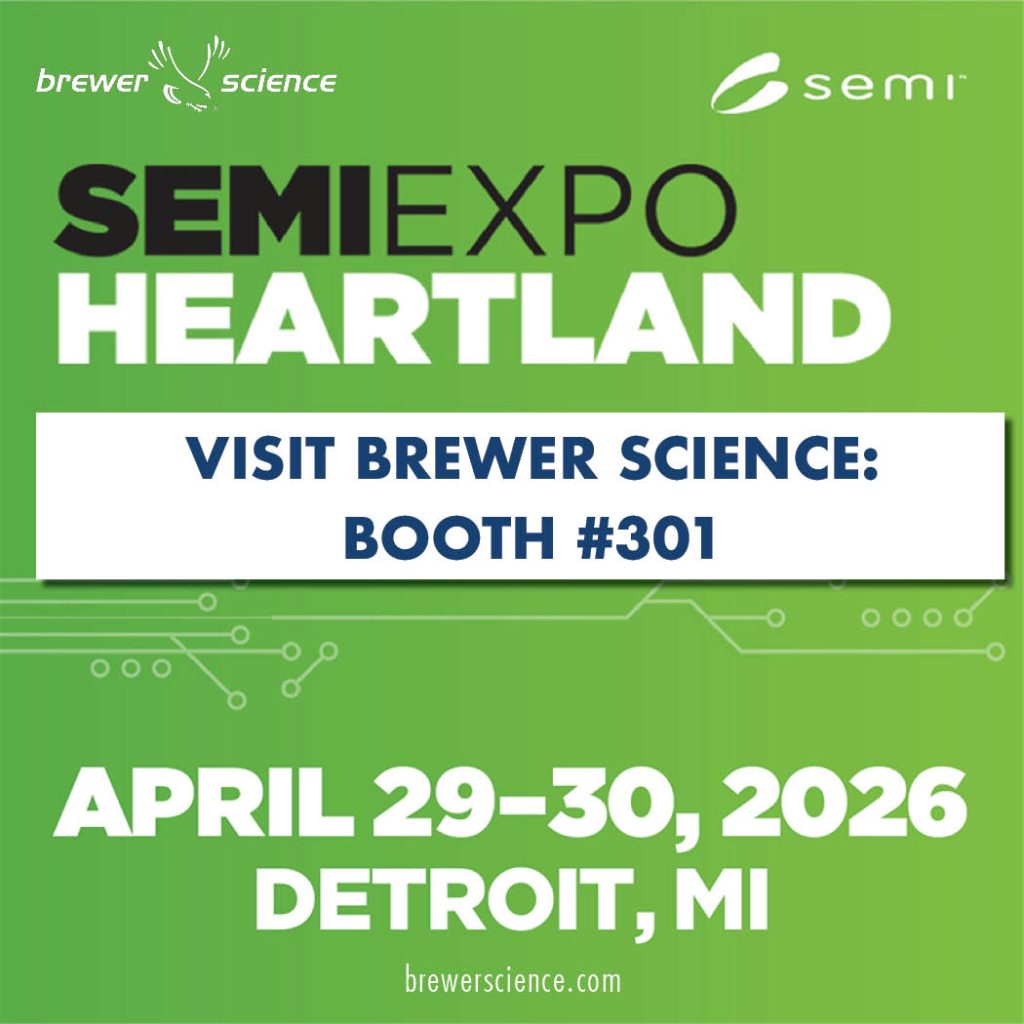 Brewer Science is exhibiting at SEMIEXPO Heartland Booth 301 in Detroit, Michigan from April 29 – 30, 2026. Brewer Science is a Gold Sponsor of the event.